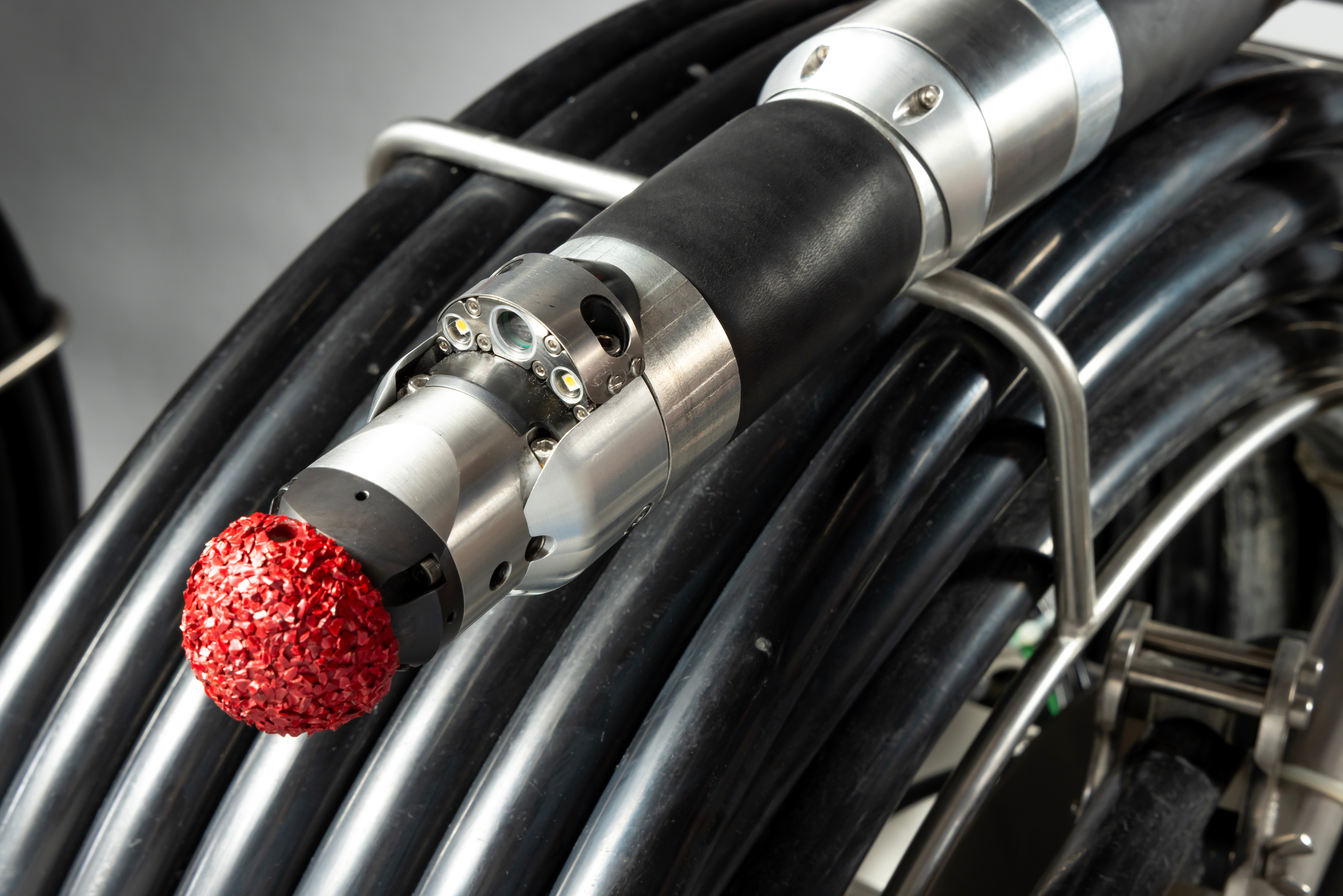 With its powerful cutting motor, these house connection cutters remove the toughest deposits and are a reliable tool when opening and reopening lateral connections after liner rehabilitation – quickly and effectively. In conjunction with the axial feed, the flexibility of the MaxLiner cutters can reach any location, and their color camera with LED illumination guarantees exact positioning